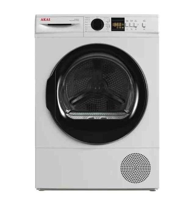 Asciugatrice AKAI ASC1047EV/T – Carica frontale – Libera installazione (FS) – Asciugatrice a pompa di calore, 15 programmi, Display LED, Rotazione doppia, Pearl Drum, Boomerang Design, Blocco parentale, Partenza differita – Prodotto disponibile soltanto per il ritiro o spedizione soltanto in Campania