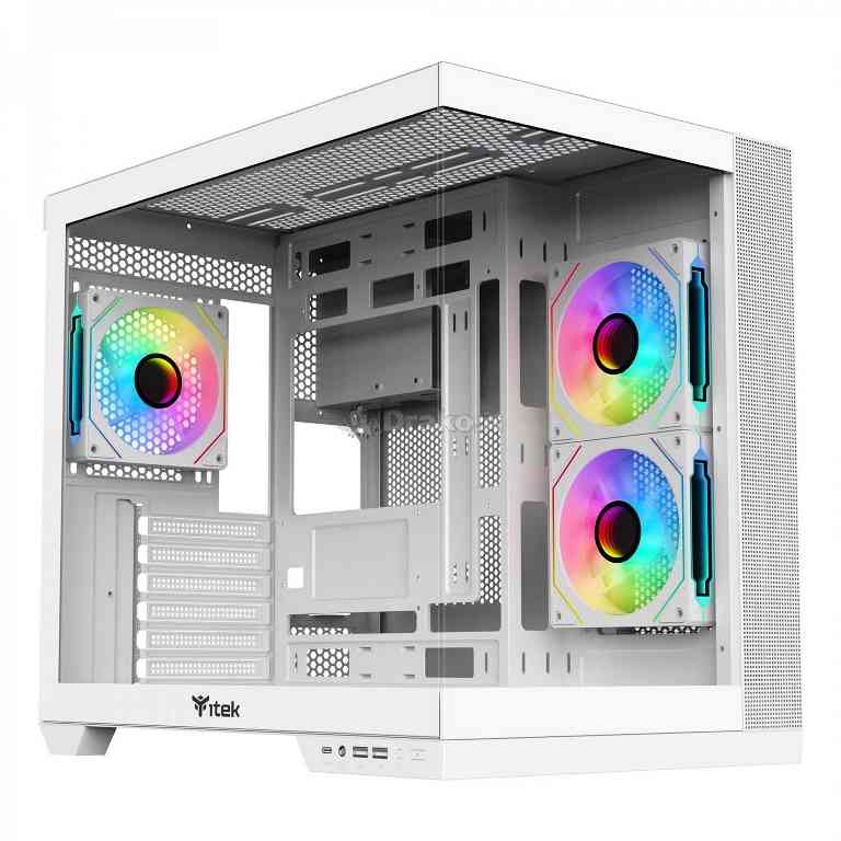 Case Itek DARK CAVE DS – White Edition – Gaming – 3x ARGB fan – Alimentatore NON incluso – 2x USB 3.0 / Type-C – Pannello Laterale trasparente – ATX, Micro Atx – Bianco