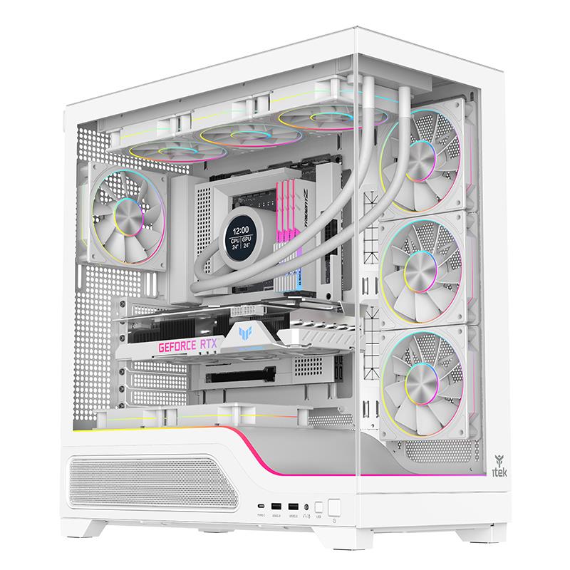 Case Itek SHOWBUI WAVE 82W – Gaming Tower, ATX, 4x12cm ARGB fan, 2xUSB3, Type-C, Side & Front Panel Temp Glass – Bianco White Edition
