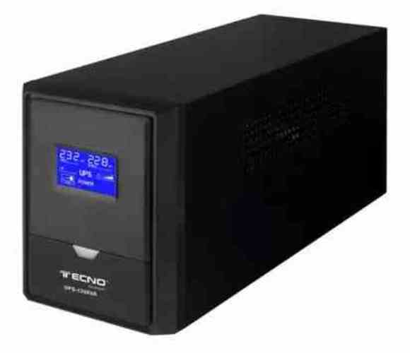 Gruppo di continuità Tecno – 1200VA / 500 Watt – Protezione da corto circuito e sovraccarico – 3 Uscite Bivalenti – Funzione AC RESTART – Display LCD