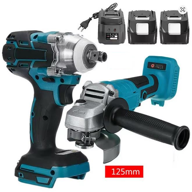 Set di utensili elettrici Avvitatore a percussione Smerigliatrice angolare elettrica senza spazzole da 125 mm – 2x batterie Kit 18v – combinato Utensile elettrico