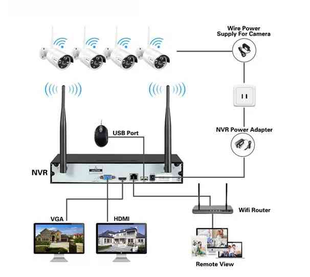 Sistema videosorveglianza Tecno TC-1403IPW-KIT – Kit Wireless – 4 Telecamere incluse – 1 x HDMI – 1x VGA
