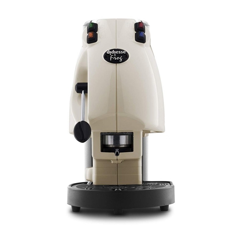 Macchina da Caffè Frog – Potenza 650 Watt, Voltaggio 220 / 120 V, Cialde 44 mm. – Termoblocco in alluminio, Sistema di decalcificazione rapido brevettato, Alloggio bottiglia d’acqua, Altezza 40 cm, Larghezza 22 cm, Profondità 32 cm – Colore Avorio