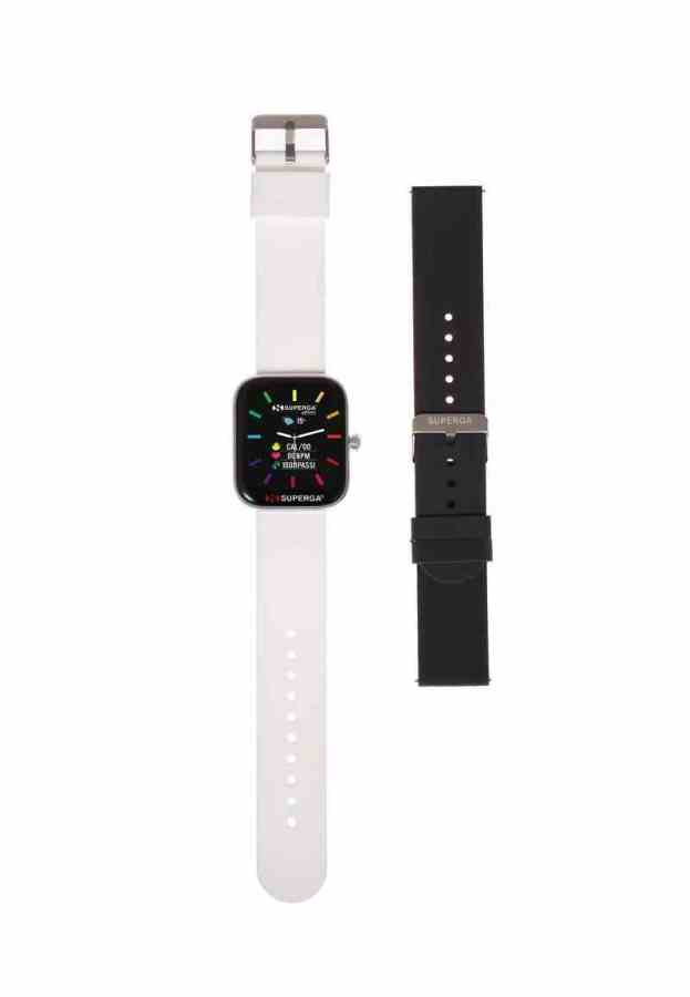 Orologio Smartwatch Superga Watch UNIKO – Orologio unisex SWT-STC002 – cassa in alluminio 42mm – android/ios/Apple – bt calling (chiamate in vivavoce tramite smartwatch) – cinturino in silicone – doppio cinturino (bianco e nero)