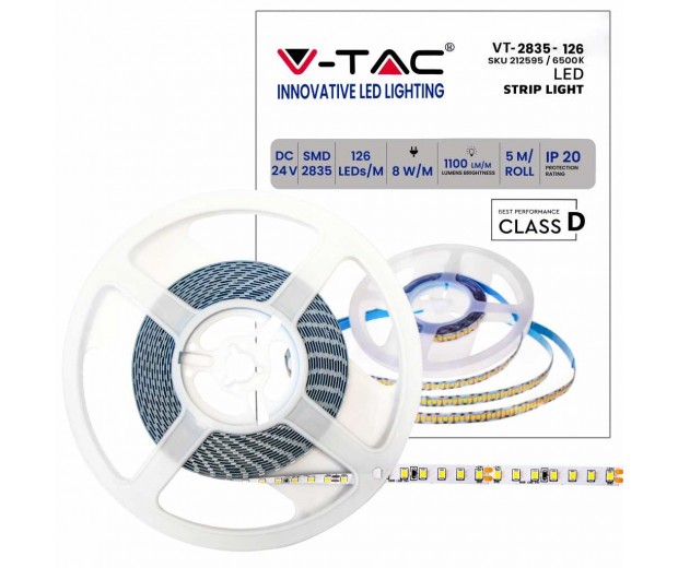 STRISCIA LED VT-2835 137LM/M 24V STRIP 5MT 8W/MT BIANCO FREDDO 6500K IP20 (212595)