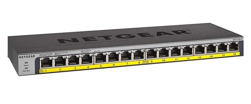 Switch di rete Netgear – PoE+ 16 porte Unmanaged GS116LP – switch Ethernet Gigabit con 16 PoE+ a 76 W (FlexPoE)